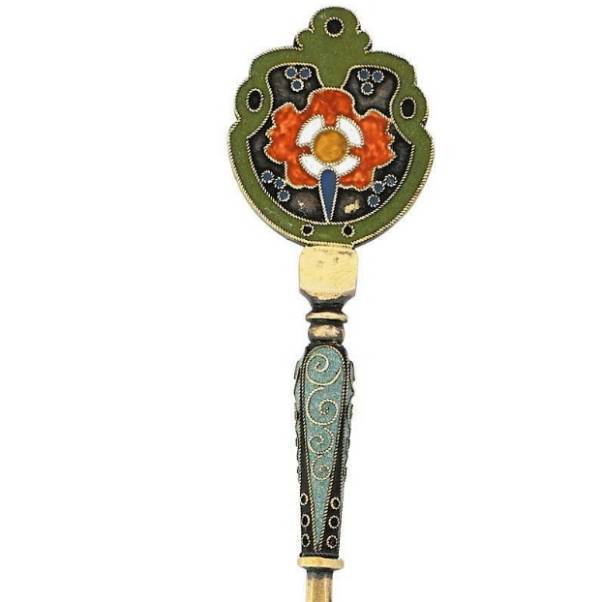 FABERGE RUSSIAN SILVER GILT CLOISONNE SPOON