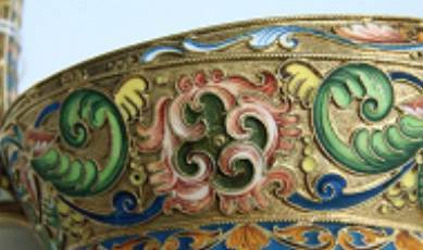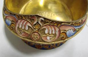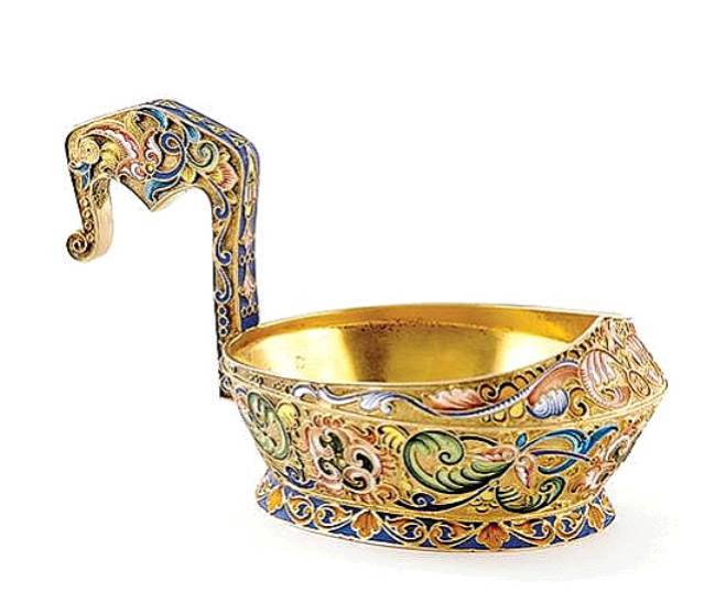 Russian silver-gilt and enamel kovsh, Feodor Ruckert Moscow, circa 1908-17