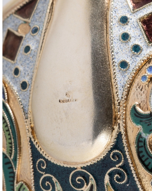 The relationship between the Fabergé firm and Feodor Rückert's workshop was one of collaboration and artistic synergy. Rückert, born Friedrich Moritz Rückert in Alsace, was already a master of cloisonné enamel, having opened his own workrooms in 1889. Rückert began to supply Fabergé in 1902, and his distinctive Moscow-produced enameling style became a popular subgenre to Fabergé's well known luxurious objects. Rückert maintained his own workshop, works sold by Fabergé bore the larger firm's hallmark, frequently overstriking Rückert's own. This partnership elevated Rückert's work to a broader audience while enriching Fabergé's repertoire with uniquely Russian objects in the popular Pan-Slavic style.