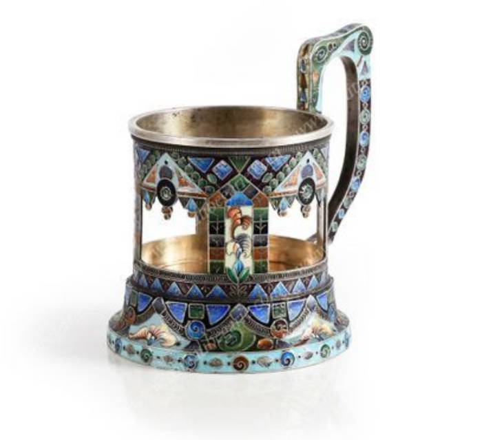 PORTE-VERRE À THÉ EN VERMEIL. Par RÜCKERT, Moscou, 1899-1908.