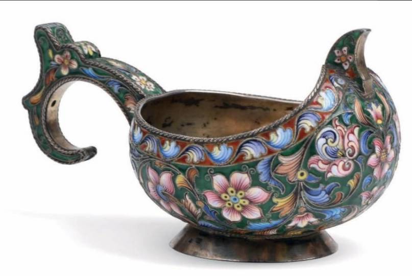 Bibliographie : un kovch comparable est reproduit dans l'ouvrage récent sur la collection Revyakin, «Feodor Rückert & Carl Fabergé», Moscou, 2016, n°4 p. 144-145-146