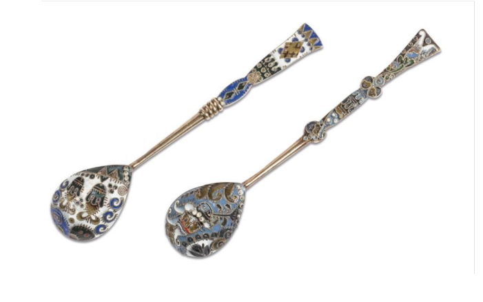 Karl Fabergé. Feodor Ruckert. Cuillère à thé, en argent, vermeil et émaux. Moscou, 1890-1915.