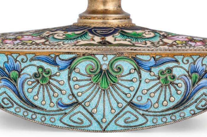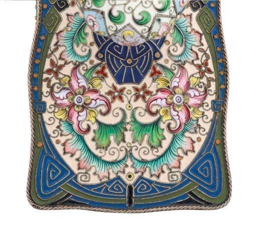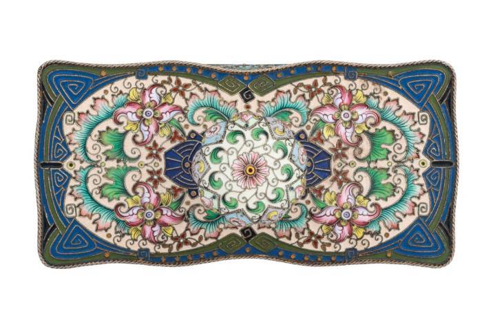 A RUSSIAN SILVER, CLOISONNÉ ENAMEL AND WOOD INK BLOTTER,