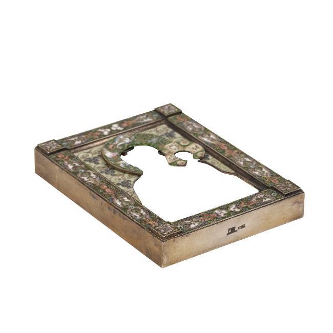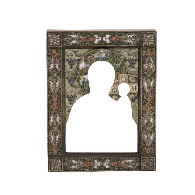 A rare Faberge silver-gilt and emameled icon riza by Fedor Ruckert