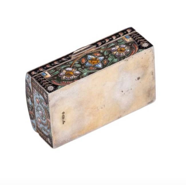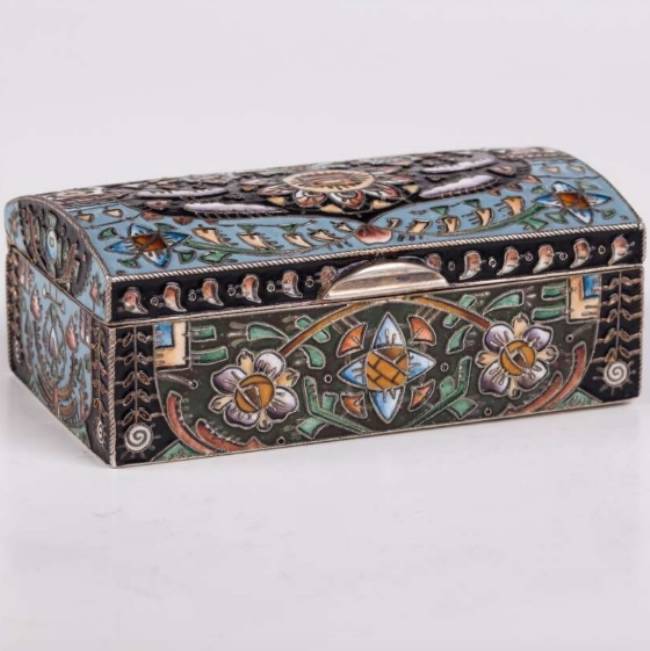 Серебро, скань, расписная перегородчатая эмаль, позолота. Мастер Ф. Рюкерт? (клеймо отсутствует), фирма К.Фаберже.