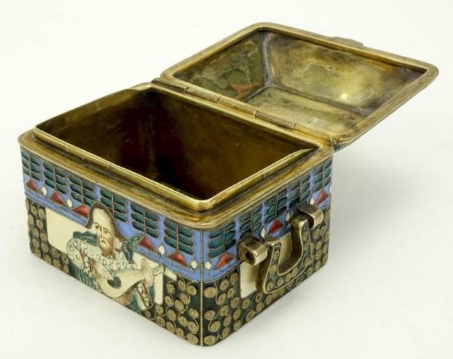 20th Century Russian Cloisonne Enamel Hinged Box. Signed Faberge, Double eagle Imperial Warrant Mark, FR and 88 Kokoshnik.
