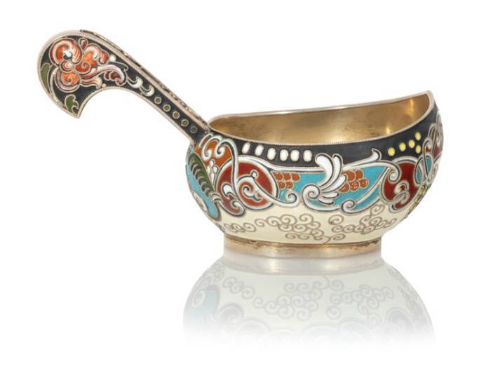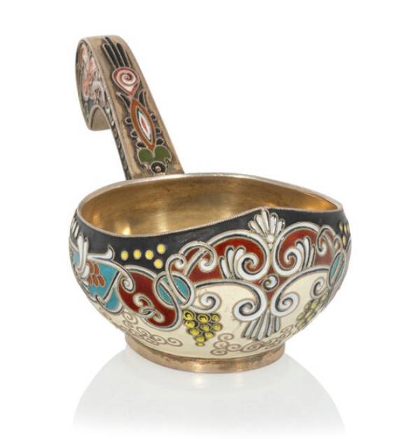A Fabergé Gilt Silver and Cloisonné Enameled Small Kovsh