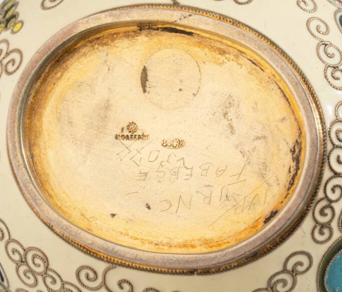 Marked K. Fabergé with Imperial Warrant, Marks of Feodor Rückert overstruck, Moscow, circa 1900, with scratched inventory number 23077