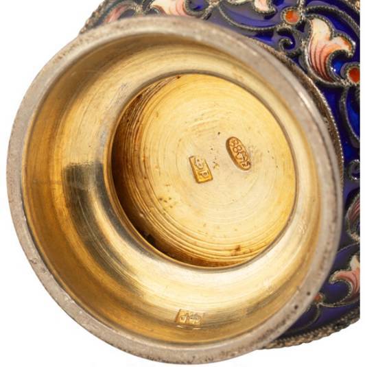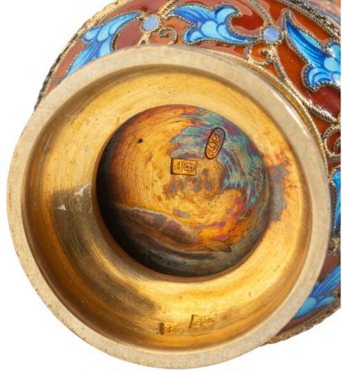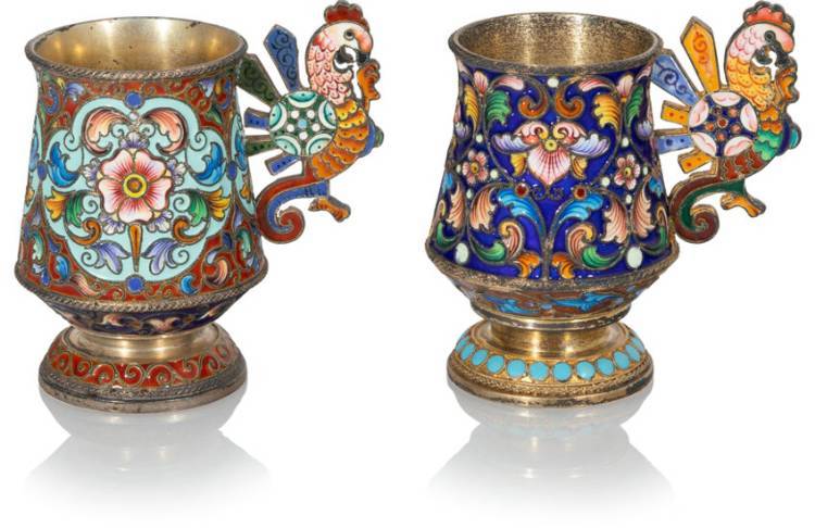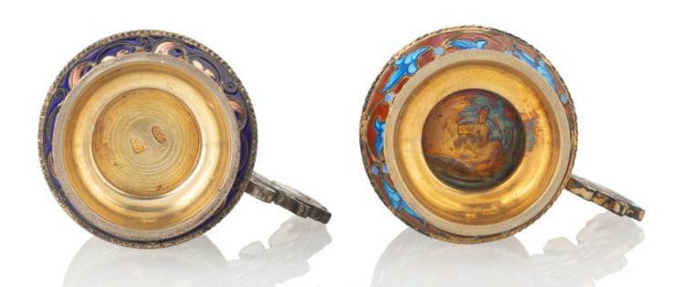 A Pair of Russian Cloisonné Enameled Gilt Silver Cups