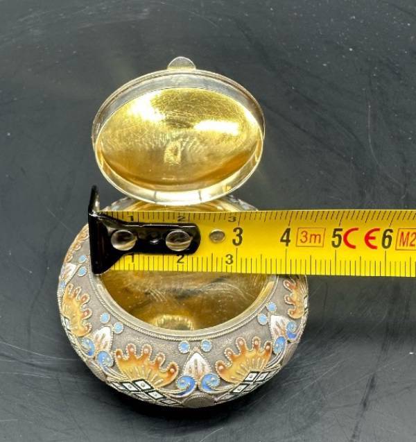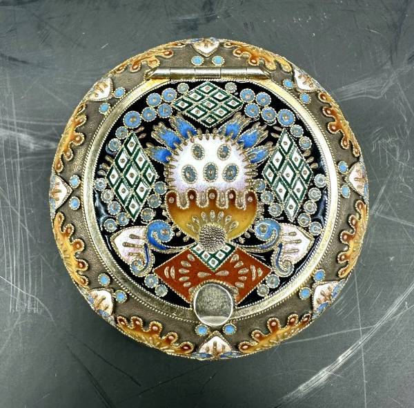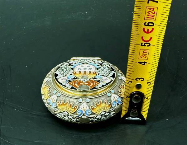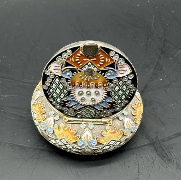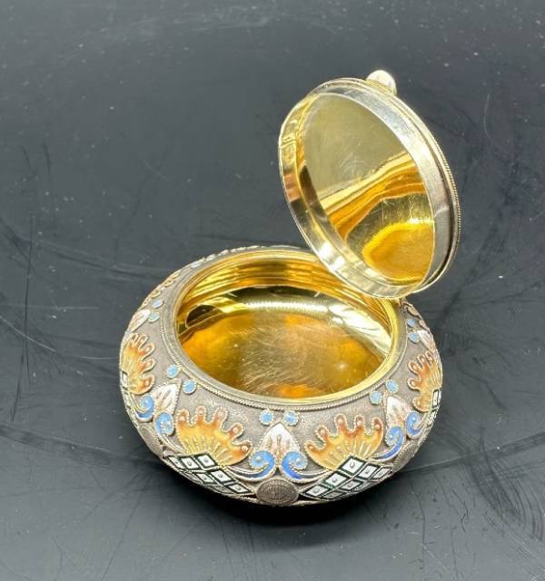 Art Nouveau decoration Russian antique silver gilt cloisonné enamel snuff box.