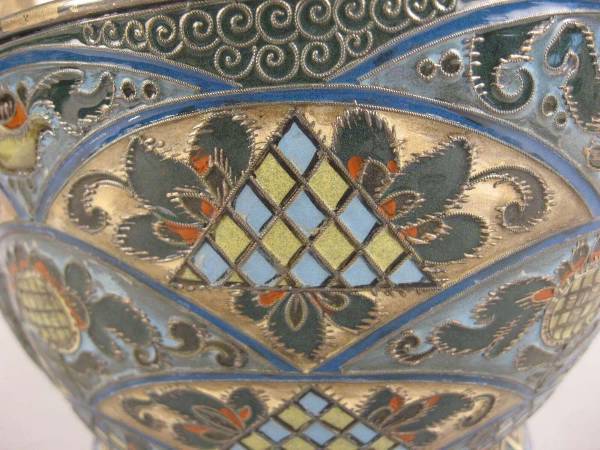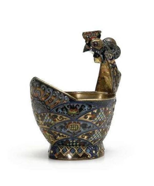 Large Russian shaded enamel and silver-gilt kovsh Feodor Rückert for Fabergé, early 20th century