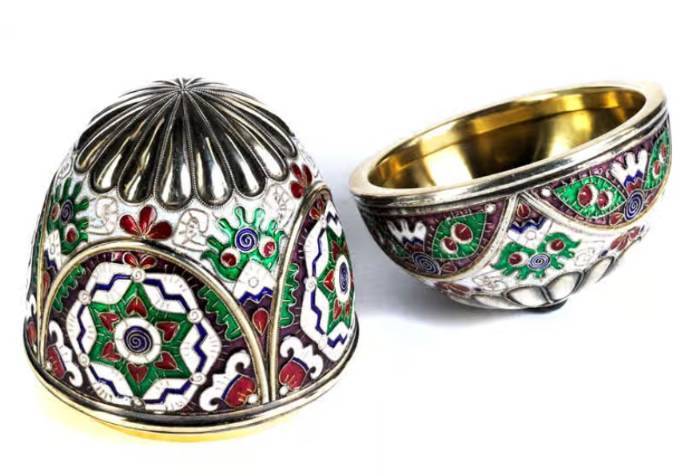 Silber gegossen, teilemailliert in Zellschmelzmanier und innen vergoldet. (1040013) (13)