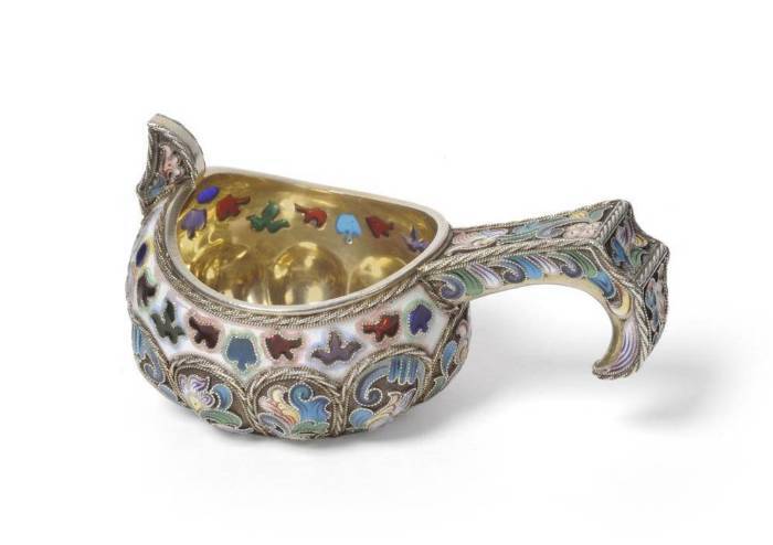 A Russian Silver and Enamel Kovsh, bearing marks for Feyodor Ruckert, St Petersburg, 1899-1908