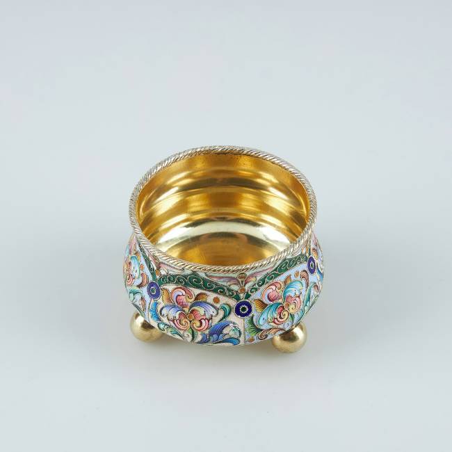 3519322. SALT CELLAR, gilt silver, cloisonné enamel. Feodor Rückert, Russia, 1896-1908.