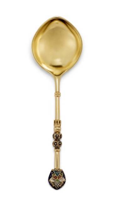 A CLOISONNÉ AND EN PLEIN ENAMEL SILVER-GILT SPOON