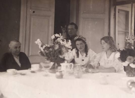Мария Васильевна с потомками Ф.И.Рюккерта (первый ряд слева направо: Мария Федоровна, Зинаида Михайловна Шутова (Руднянская)(дочь Софьи Федоровны), с дочкой Ирочкой; Константин Иосифович Блажевич (муж Марии Федоровны); СТОЯТ (слева направо):Евгения Михайловна Руднянская (дочь Софьи Федоровны), Софья Федоровна Руднянская (Рюккерт);Елена Константиновна Яковлева (Блажевич), дочь Марии Федоровны и Константина Иосифовича.