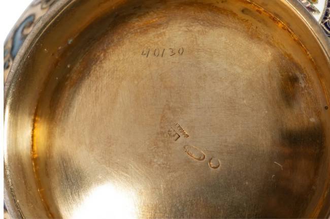 A Russian Pan-Slavic Cloisonné and En Plein Enameled Gilt Silver Pictorial Kovsh