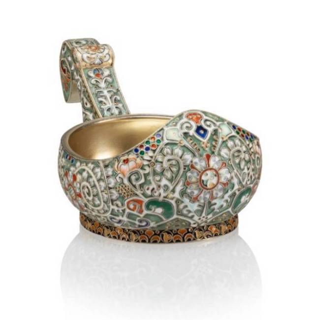A Silver-Gilt and Cloisonne Enamel Kovsh