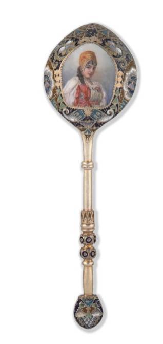 A Russian Pictorial En Plein and Cloisonné Enameled Tea Spoon