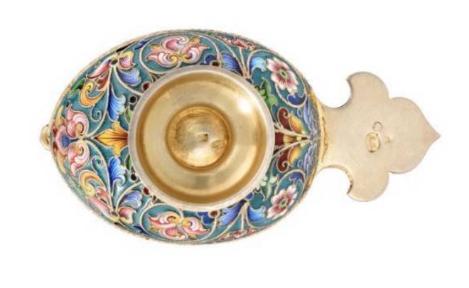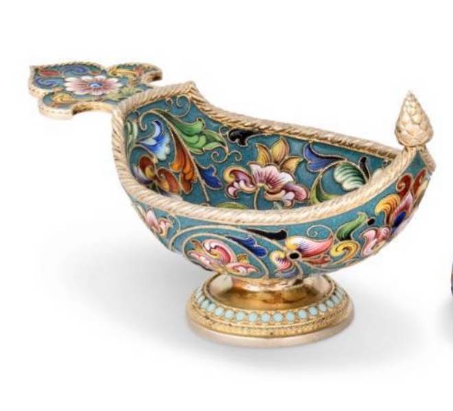 The kovsh, 33⁄4 in. (9.8 cm.) wide, and smaller