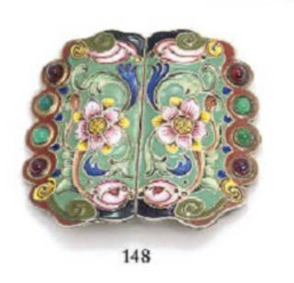 A jewelled silver-gilt and cloisonne enamel belt buckle