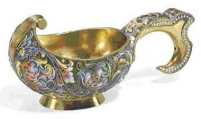 A Silver-Gilt and Cloisonné Enamel Kovsh