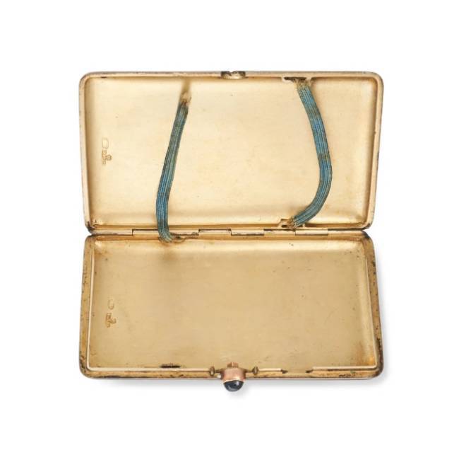 FABERGE, AN ANTIQUE RUSSIAN CLOISONNE ENAMEL AND SILVER CIGARETTE CASE, MOSCOW 1908-17