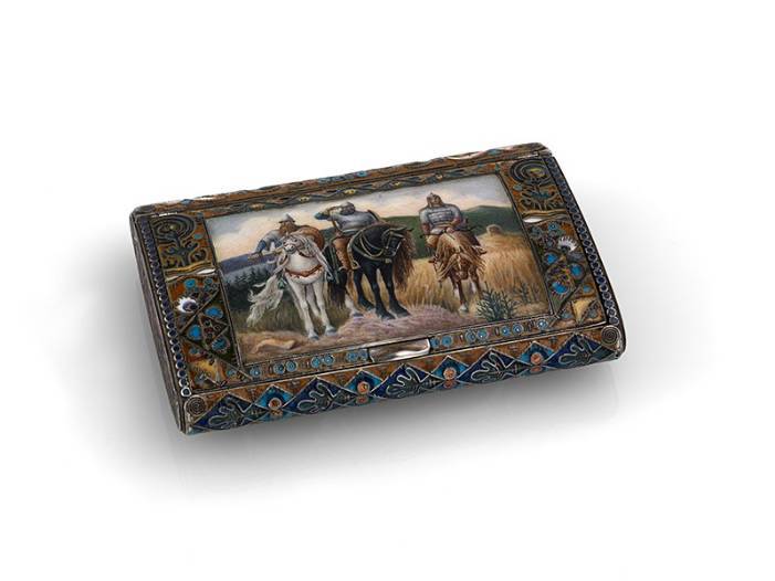A Silver-Gilt Pictorial and Cloisonné Enamel Cigarette Case