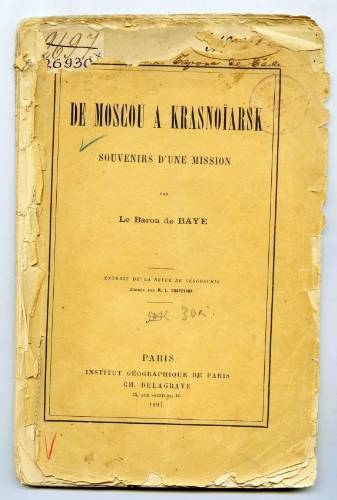 Спустя четыре года после конгресса французский ученый посетил восточные и европейские губернии России, а затем и Сибирь. Выбранный им маршрут по местам продвижения древнейших людей с востока, из Азии в Европу, был обусловлен открытием И.Т. Савенкова на Афонтовой горе. После длительных путешествий (продолжительностью в полгода) были опубликованы воспоминания барона де Бая на французском языке «От Москвы до Красноярска» (1897 год, Париж).