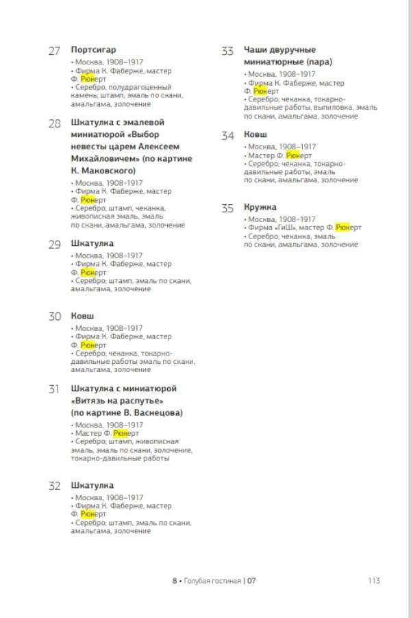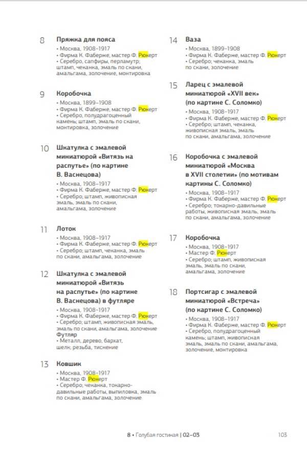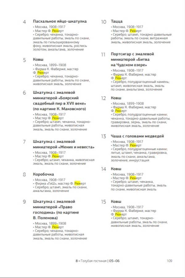Каталог 2014 г. работ Рюкерта в Голубой гостинной