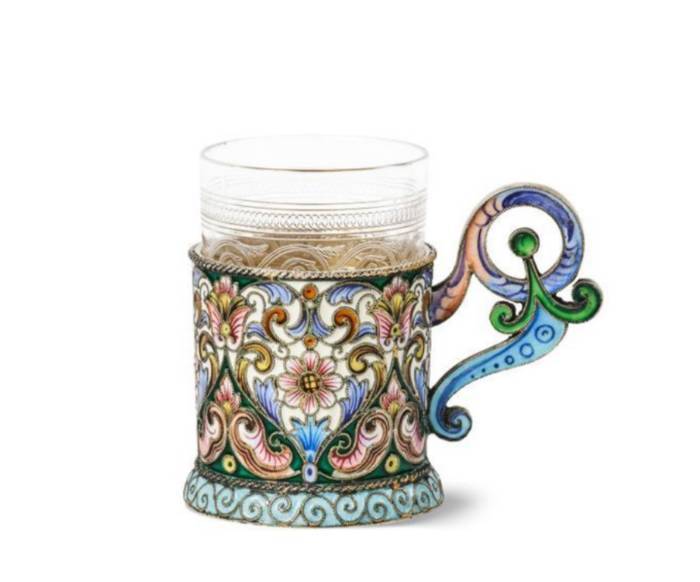 Полностью украшен полихромной перегородчатой эмалью, включая ручку.