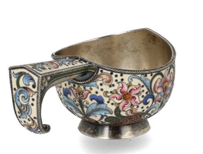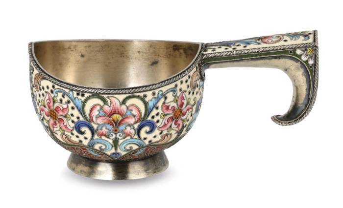 A Muscovite Cloisonné Kovsh by Fedor Rückert