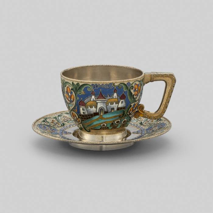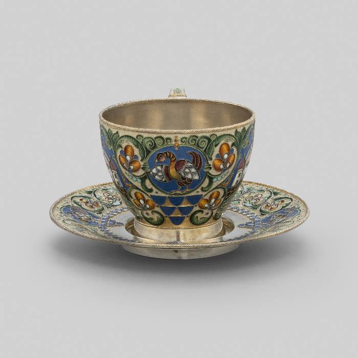 MATERIALS AND TECHNIQUES: Silver-gilt with cloisonné enamel