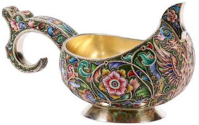 AN IMPRESSIVE RUSSIAN SILVER AND ENAMELED KOVSH, FEODOR RUCKERT, MOSCOW, 1896-1908.