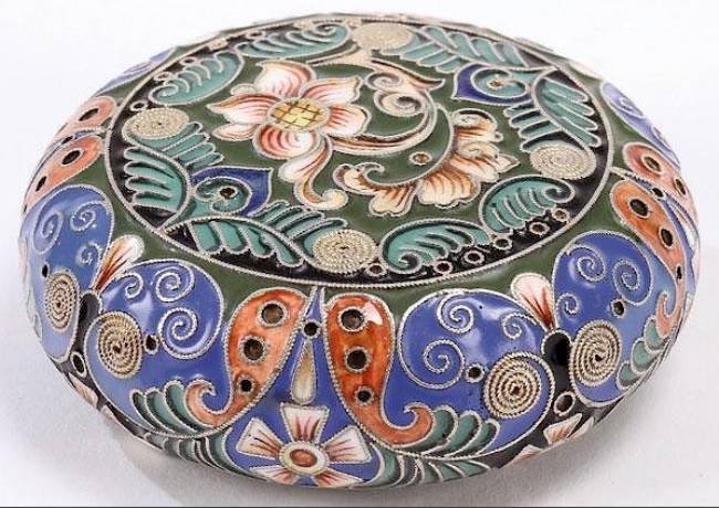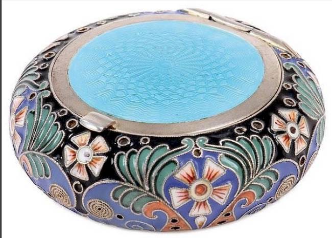 A RUSSIAN SILVER AND ENAMEL PILL BOX, FEODOR RUCKERT, MOSCOW, 1896-1908.