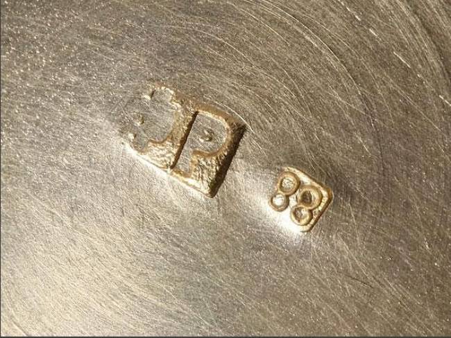 The compressed spherical form with shaded enameled body rendered in the Pan Slavic style, typical of Ruckert’s work and the hinged lid in translucent turquoise enamel over an engine-turned ground. Hallmarked Moscow, Cyrillic maker’s mark FR, and 88 silver standard. Diameter 2.1 inches (5.4 cm).