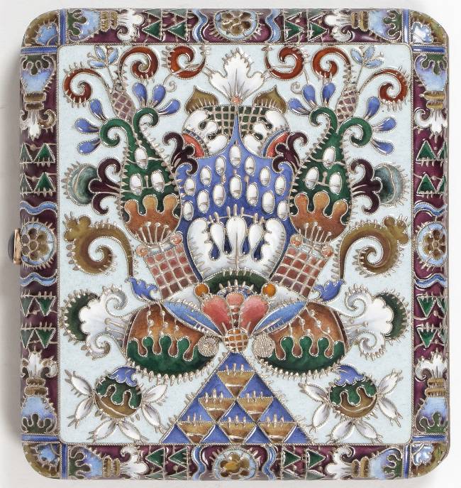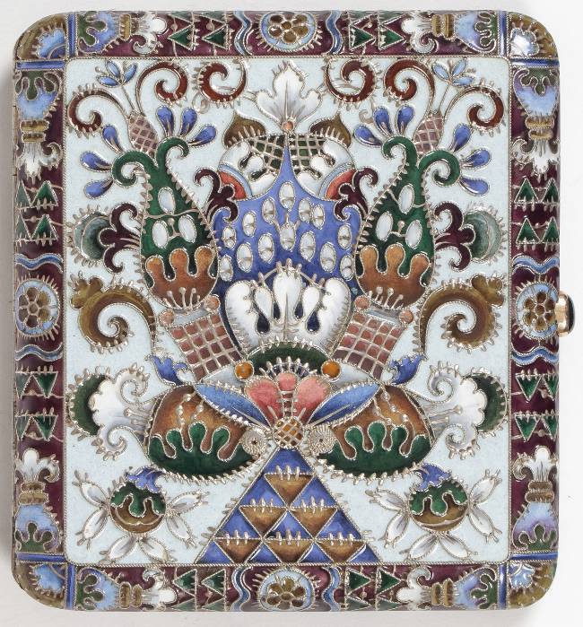 RUSSIAN SILVER & ENAMEL CIGARETTE CASE KURLYUKOV.