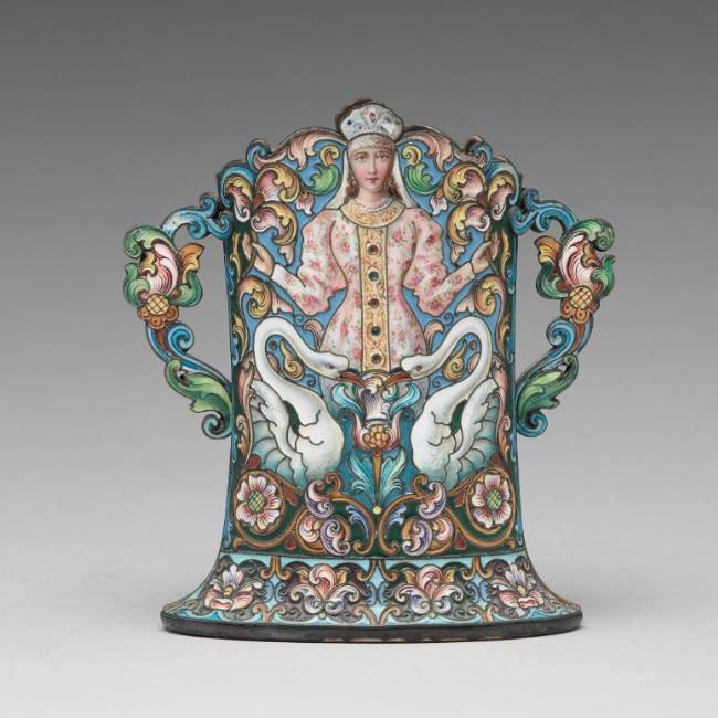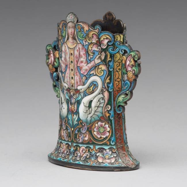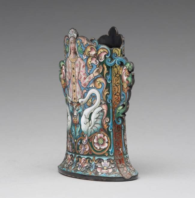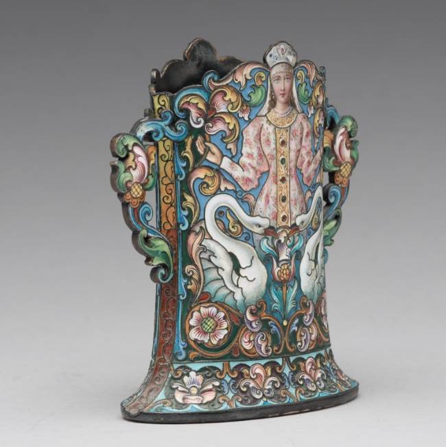 A Feodor Rückert silver and cloisonné enamled vase, Moscow 1899-1908
