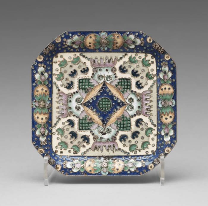 A Fabergé silver-gilt and enameled coaster/tray, mark of Feodor Rückert, Moscow 1908-1917