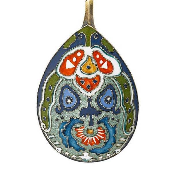 FABERGE RUSSIAN SILVER GILT CLOISONNE SPOON