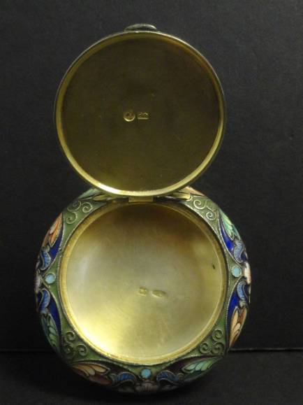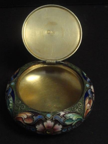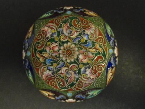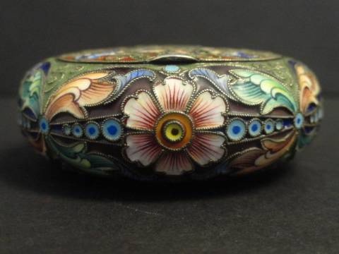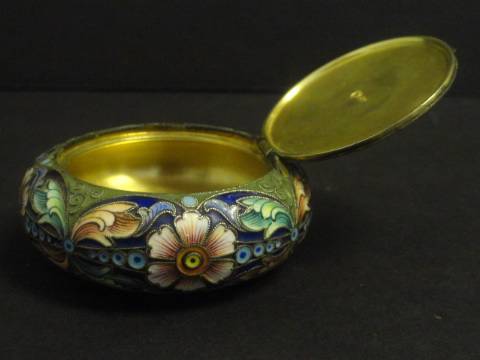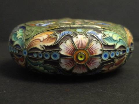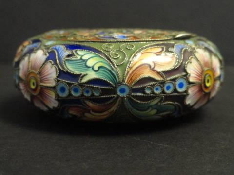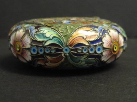 Item #844: Antique Russian silver 84 cloisonne shaded enamel snuff box by Feodor Ruckert