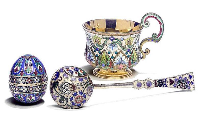 Russian silver-gilt and Pan-Slavic cloisonnй enamel spoon. Carl Faberge in Moscow, presumably by Feodor Rьckert, assay mark of 1908-1917, 84 standard. Weight 35 gr. L. 13.5 cm.