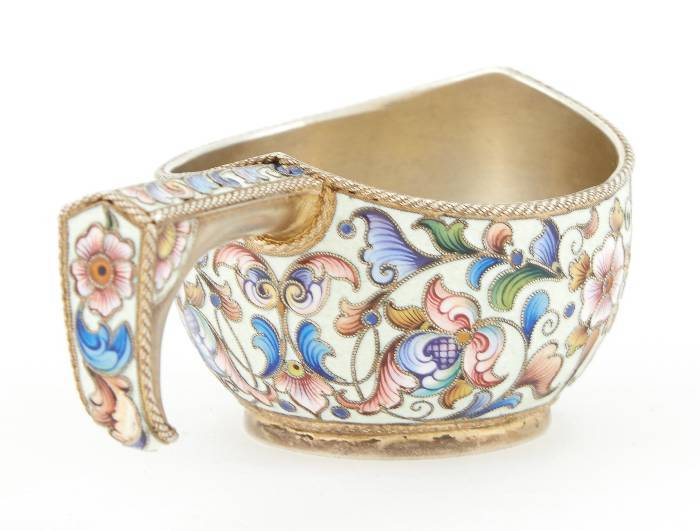 Russian Silver-Gilt and Cloisonné Enamel Kovsh