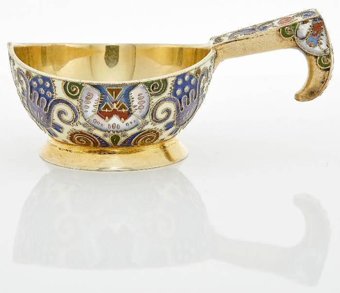 Russian Silver-Gilt and Cloisonné Enamel Kovsh