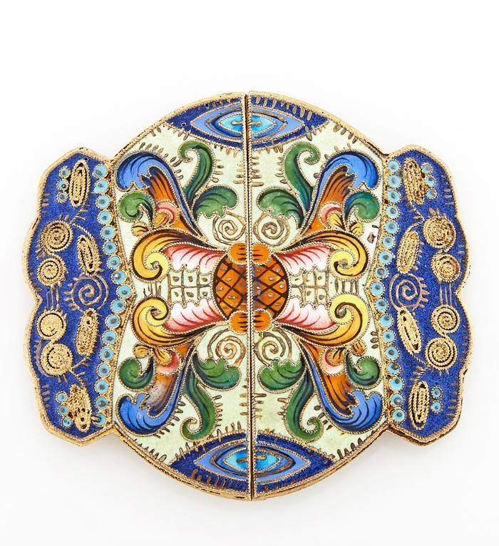 Russian Silver-Gilt and Cloisonné Enamel Belt Buckle