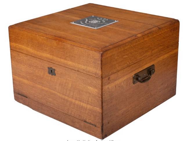 The Original Commission A recent conservation cleaning has revealed that beneath the later 1920's presentation plaque, a pavilioned heraldic recess exists on the presentation box's top, indicating that the work may have been commissioned as an Imperial or princely gift. The distinctive outline of the recess indicates that the plaque bore the heraldic mantling associated with imperial or princely arms. It appears, however, that the work may never have left Fabergé's stock; no sales records have yet been found. The extraordinarily high value of the object, 10,400 rubles is worth noting.