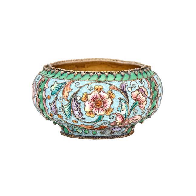 Russian Silver-Gilt and Cloisonné Enamel Salt