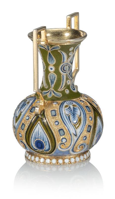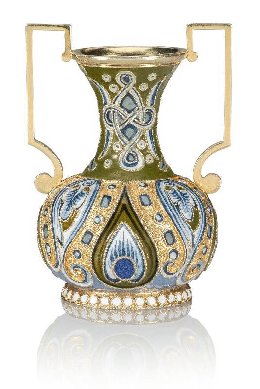 A Russian Pan-Slavic-Style Cloisonné Enameled Gilt Silver Miniature Vase