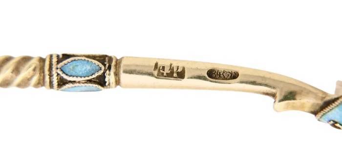 Hallmarks: maker's mark "FR" in Cyrillic, 84 Russian silver standard.