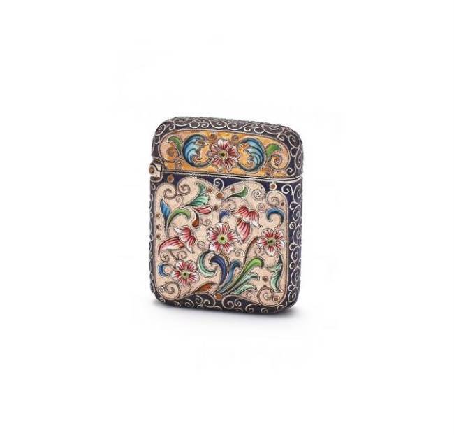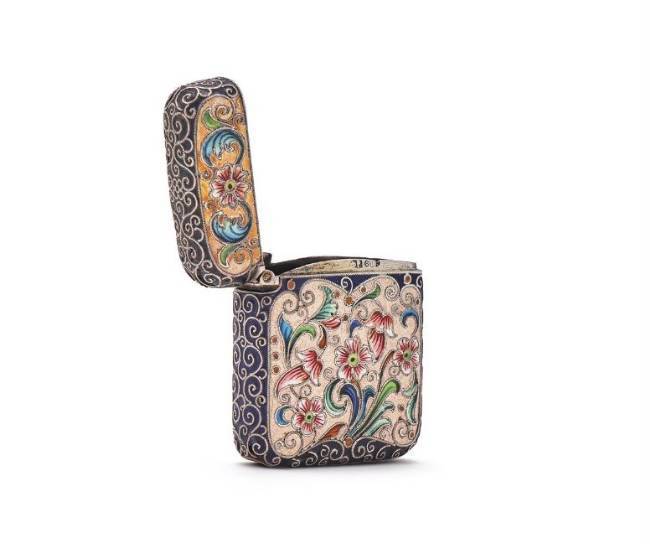 FEODOR RÜCKERT, A SILVER AND CLOISONNÉ ENAMEL VESTA CASE MOSCOW 1899 - 1908